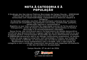 O Sindicato dos Servidores Públicos Municipais de Campo Mourão – SINDISCAM reafirma que todas as suas ações durante a campanha salarial foram conduzidas com responsabilidade,